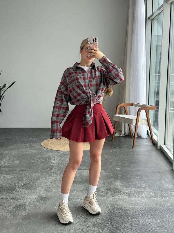 Юбка-шорты Мод: 1433-274 ▪️Ткань: замш на дайвинге ▪️Размер: 40-42, 42-44, 46-48 ▪️Цвет: черный, бордо, Кэмел