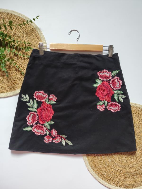 Юбочка с вышивкой в размере S-M. Бирочка срезана. 🔹Длина 43 🔸Пояс 37 🔹Стегна 48