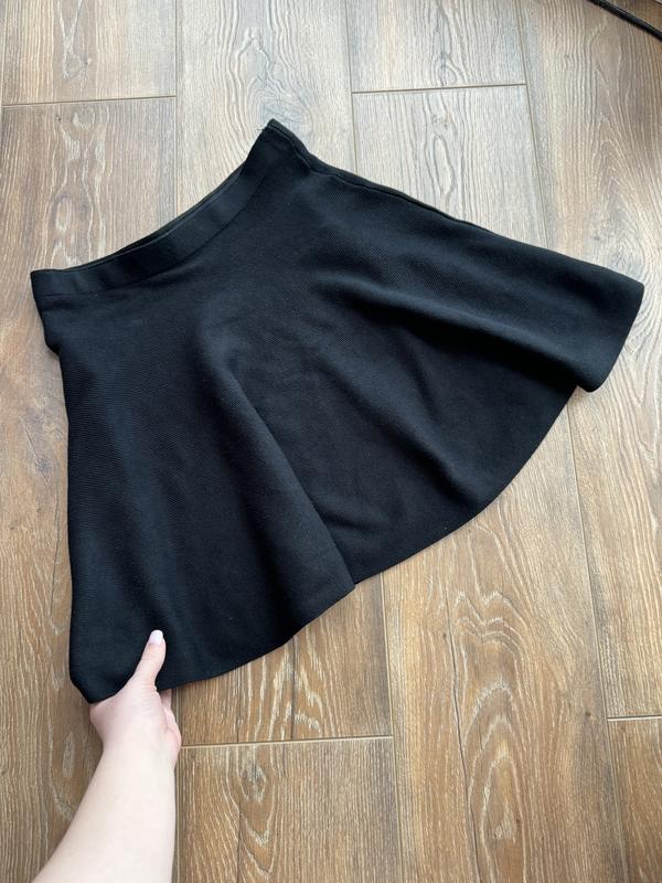 Чорна спідниця до коліна, дуже класно виглядає, на резинці. На розмір ХС-С. Резинку можна підгорнути, щоб була коротша. В ідеальному стані