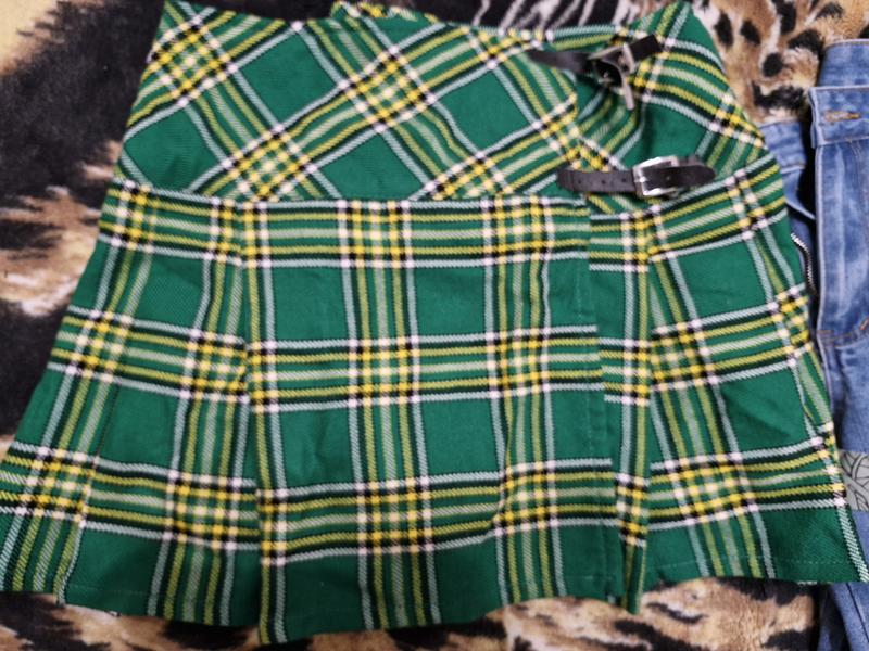 Трендовая новая мини юбка в стиле гранж юбочка в клетку, ткань шерсть, имеет застежки с кожаными элементами подойдет на размер M-L