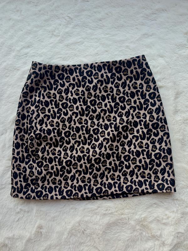 Мініспідниця леопардова H & M з набивним малюнком Злегка трапецевидний крій ❗️ На підкладці ❗️ Ззаду на змійці + ґудзик Розмір XS - S, на бірці розмір 34 Довжина всього виробу 37 см Дефекти на останніх 3-ох фото ❗️