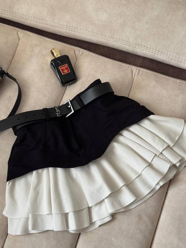 Спідниця коротка (чорний з білим) Артикул:1557-333 Спідниця, яку хочуть всі Ціна: 699 грн Розмір: 42-44 та 46-48 Тканина: верх-щільний джинс турецький, волани-турецький рубчик на легкому фліссі Спідниця з імітацією баски. Вона поєднує в собі зручність та підкреслить ваш стиль і легкість. Така спідниця ідеально підійде для повсякденних днів чи вечірок, створюючи легкий та романтичний образ.