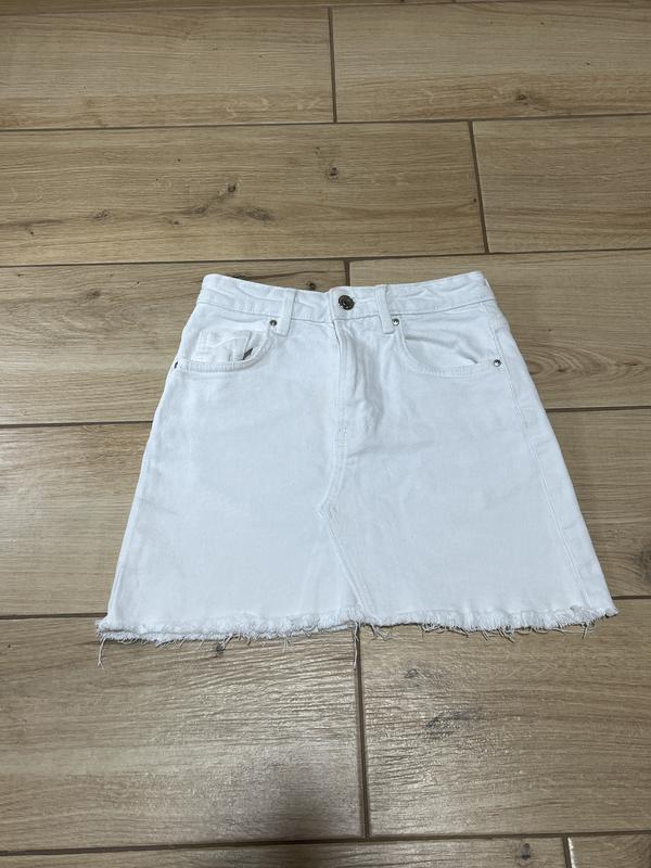Белая джинсовая юбка для девушек 9-11 лет, в очень красивом состоянии без дефектов,32 размер, изготовитель Sinsay, длина 33 сантиметров,пола обхват талии 30 сантиметров