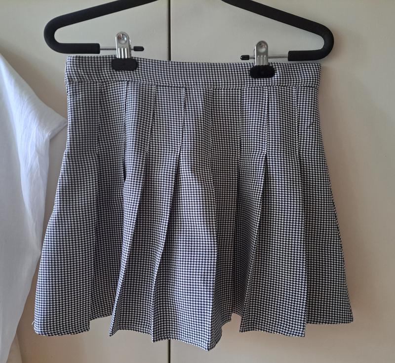 Плисерированная юбка с шортами в черно-белую гусиную лапку. Размер М: • ОТ - 37 см. • ОБ - 50 см. • Длина - 40 см. Застегивается на боковой молнии. Состав: полиэстер 95%, спандекс 5%. Стала большой, поэтому продается. Надевала несколько раз, в хорошем состоянии.