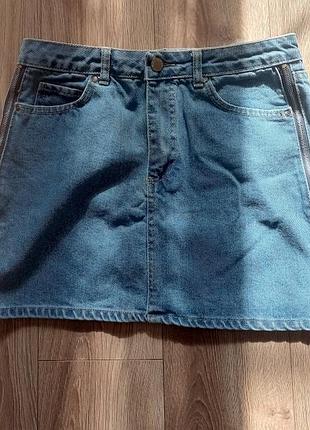 джинсовая молодежная юбка по бокам замка 44-46