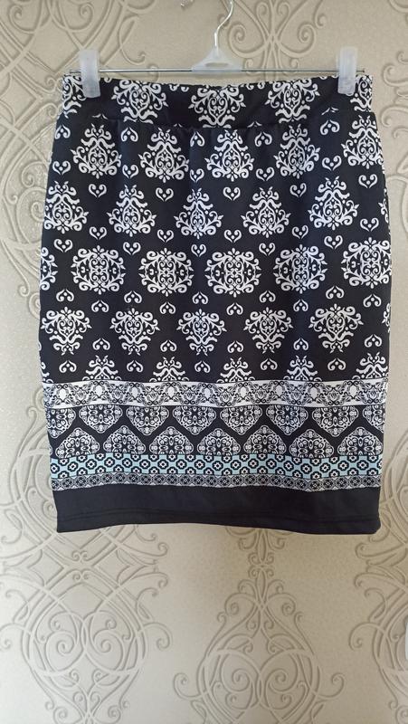 Нова спідниця. тканина дуже якісна, щільна, гарно розтягується, але і тримає форму. Пояс на гумці. Довжина -54см, пот-38-45см, пос-51-56см, низ -48+см .