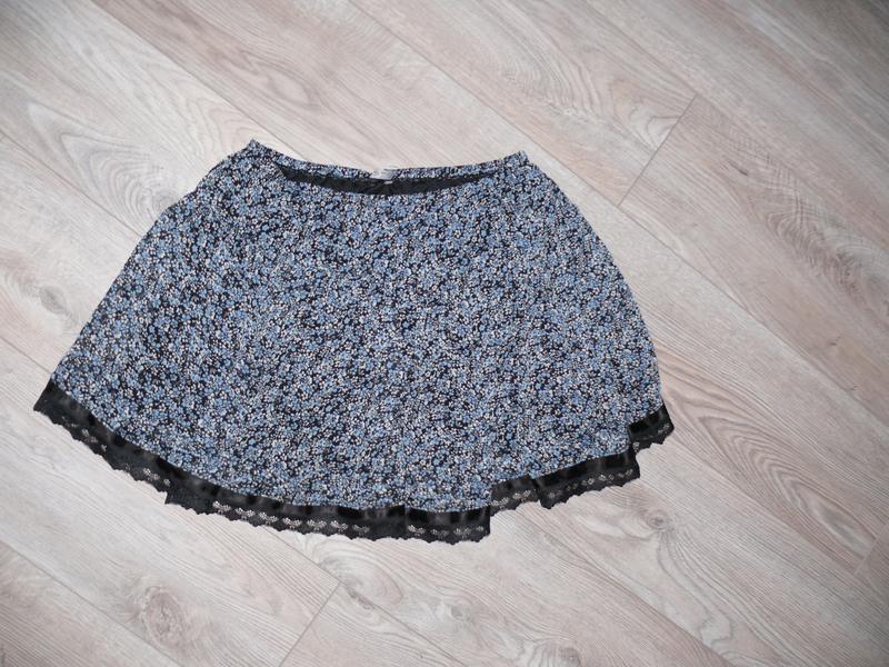 красивый и нежный цветочный принт на резинке размер М (длина 42см, пояс 36см) внизу кружево на подкладке