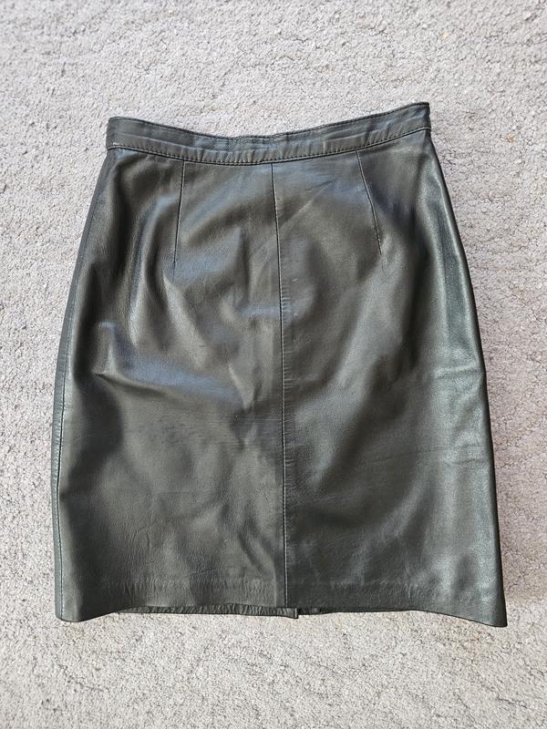 Стильная юбка из натуральной!! кожи и идеальном состоянии. На подкладке из вискозы. Годы! Классическая модель, немного трапеция, длина до колена, на высокую девушку будет мини. Размер ХС-С Замеры: Пояс 30,5 Бедра 43 Длина 45