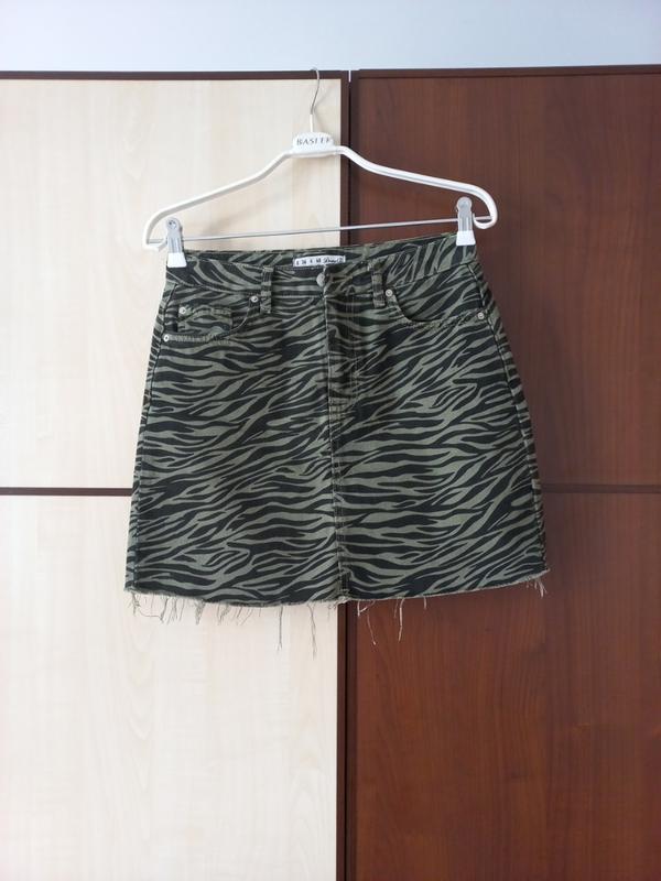 джинсовая мини-юбка с принтом зебры. Длина 39 см, ПОТ 35 см, ПОБ 45 см.