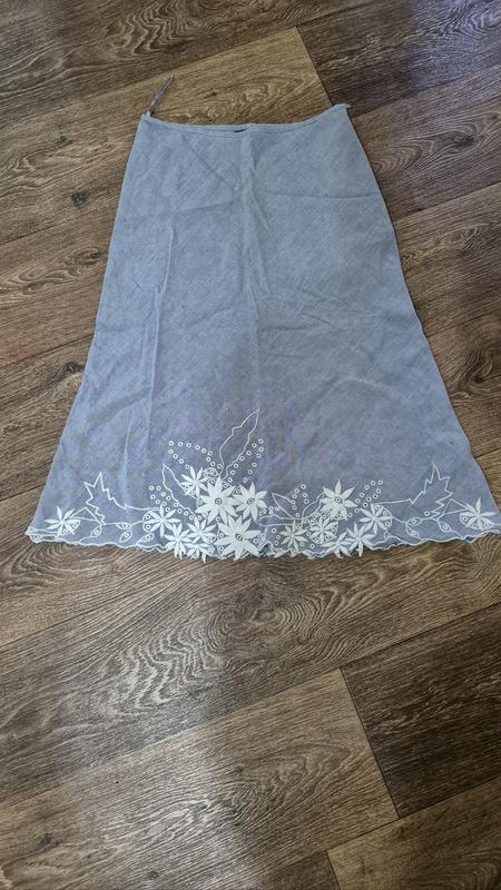 Вышитая невесомая летняя юбка, скроенная по косой линии. Состав лен + вискоза. Идеальное состояние. Замеры дам по запросу.