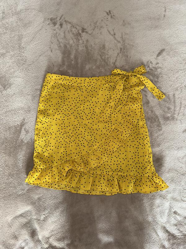 Спідниця жіноча на запах жовта в горошок на завʼязках s m