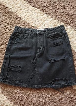 Нова джинсова юбка рвана.Розмір 38, 10.Без стрейчу,колір чорно-сірий.Заміри длинна 41 бедра 47 пояс 38