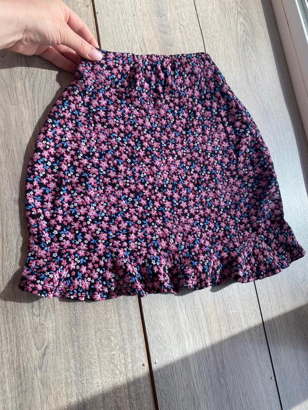 Мини юбочка цветочный принт с оборками, хорошо тянется, состояние новой. Размер s