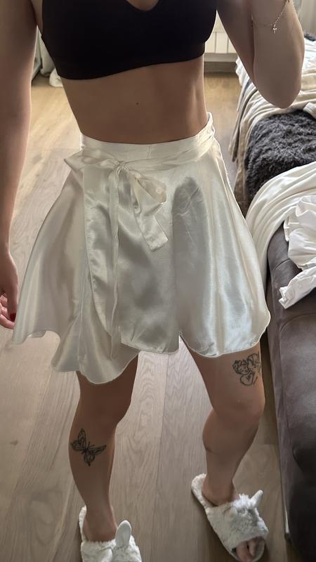 Біла спідниця зі шовку або атласу. Легка, ніжна та елегантна. Ідеальний вибір для спеціальної події або романтичної прогулянки. Обматывается практически в двое, отлично сидит, не жарко летом в ней совсем На любой размер подходит