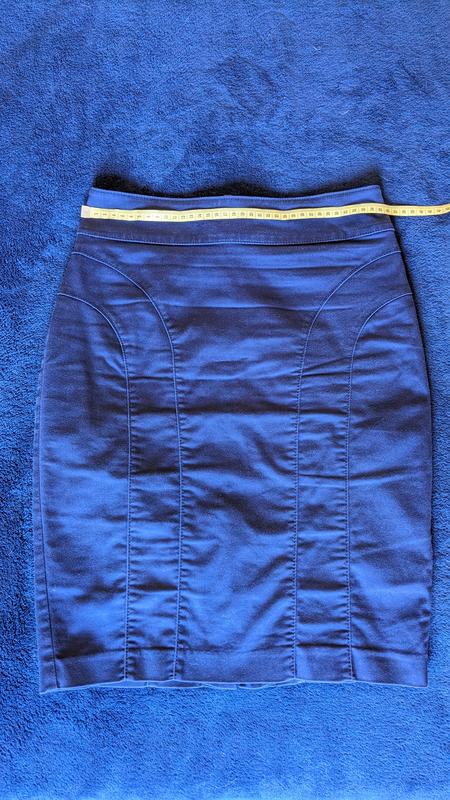 Женская юбка темно синего цвета, очень элегантно подчеркивает фигуру. Подойдет как для офиса, так и взглянув на повседень. H&M, размер 36. Фактические замеры на фото.