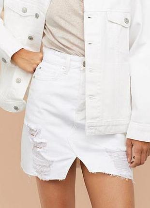 Белая джинсовая юбочка H&М из качественного плотного джинса Очень стильно и соблазнительно смотрится на теле. Размер европейский 38 М но может подойти и на 36 S-M. Замер ПОТ 36,5см ПОБ 50 см Длина 42см