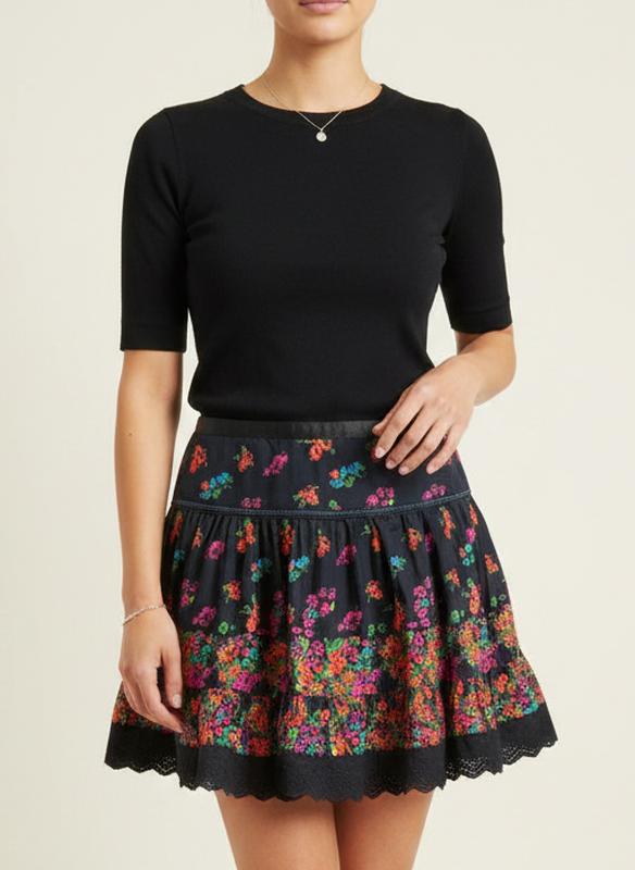 Пышная юбка в традиционном стиле с кружевом E-vie Подкладка внутри. 100% тонка бавовна. Сбоку молния. На этикетке размер 12/40. Может носиться как ниже талии так и на бедрах. длина - 37,5 см ширина в поясе - 42,5 см