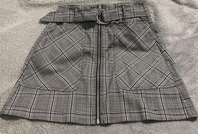 Стильная юбка Stradivarius в клетку Размер: EUR 36 / USA 4 / UK 8 Цвет: Серый в классическую клетку Материал: плотная ткань, приятная на ощупь Особенности: пояс с пряжкой, трендовый крой, застежка-молния спереди Состояние: идеальное, без дефектов