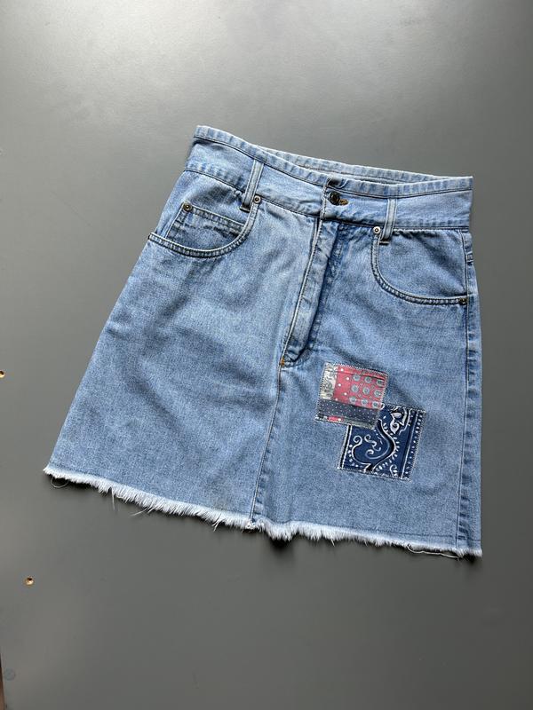 Мягкая голубая джинсовая юбочка. Этикетка со складом ткани отсутствует. Выглядит на хлопок, но немножко тянется. Очень приятная к телу. Защелкивается на замочек. Длина - 44см По талии - 34см По бедрах - 45см