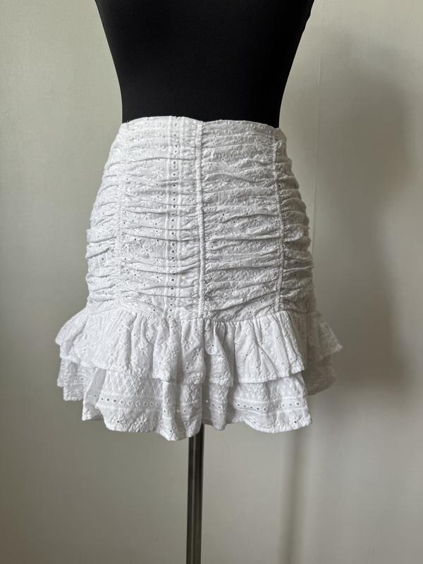 Міні спідниця, білого кольору від ZARA Розмір XS У складі 100% катон, є підклад Довжина 38 см, напівобхват талії 33 см, напівобхват стегон 47 см Стан ідеальний