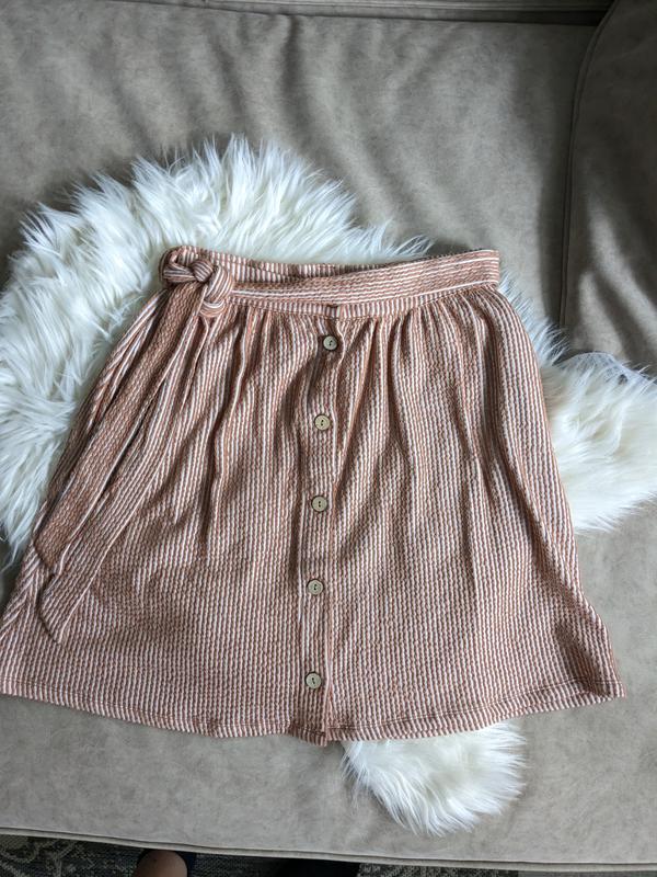 Юбка приобретала для себя дороже, чем продажи, но мне к сожалению запала. Новая, бренд Colins. Размер S длина 47см, ширина по низу 68см, ширина по линии пояса 32см, ширина по бедрам 57см. Крой свободный.