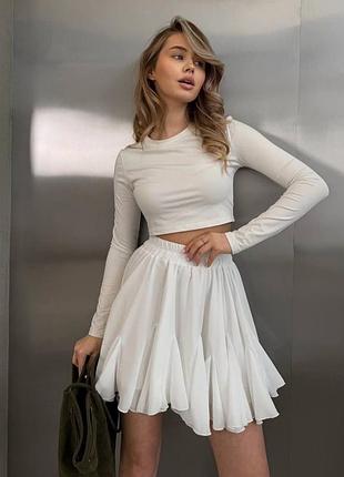 спідниця-шорти - стильний та зручний одяг для літніх днів. Ідеальний варіант для прогулянок або пікніків. Тканина: Софт, підклад спідниці бавовна шорти Кольори: білий, рожевий, чорний Розміри: один розмір (орієнтовано 42-44) Ціна 550грн Тренд цього сезону повітряна спідниця з валанами та підкладкою із бавовни яка іде шортами