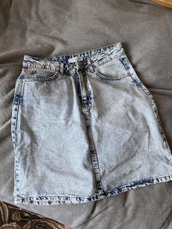 Крута спідниця носила в задоволення високої посадки блакитного кольору зручна тягнеться довжина до коліна