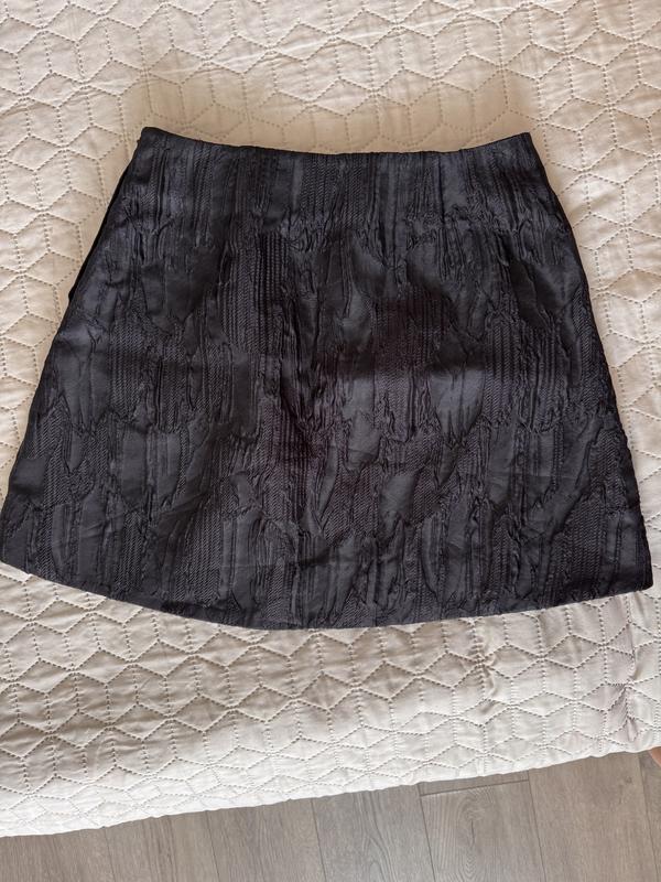 Спідниця нова, купувалась у стоці (на мене велика, тому не носила). Дуже стильна, структурована тканина з неймовірним складом Заміри: Пояс 33,5 Ширина по стегнах 47 Ширина низу 59 Довжина 40 Застібається на блискавку