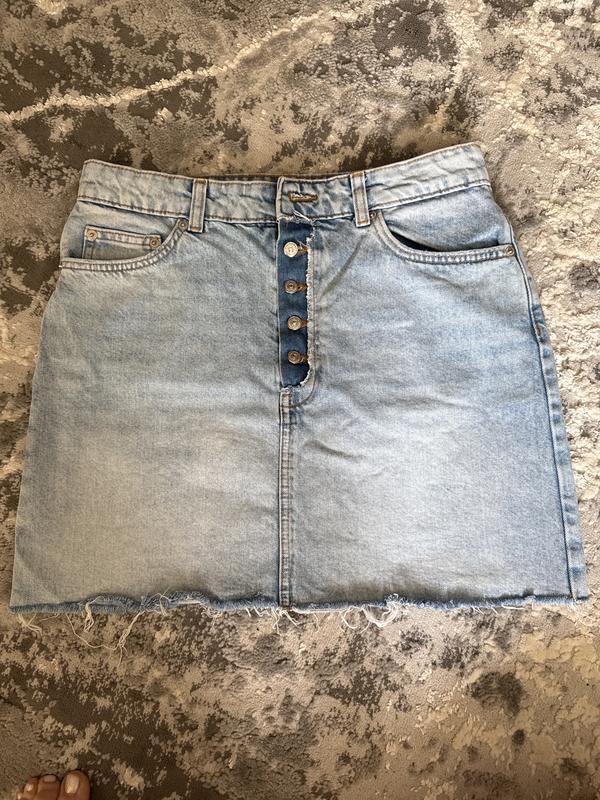 Спідниця фірмова, плотний джинс, не тягнеться, заміри на фото, нюанс на другому фото, трохи бірки полиняла, але на носку зовсім не впливає, зроблю подаруночок.