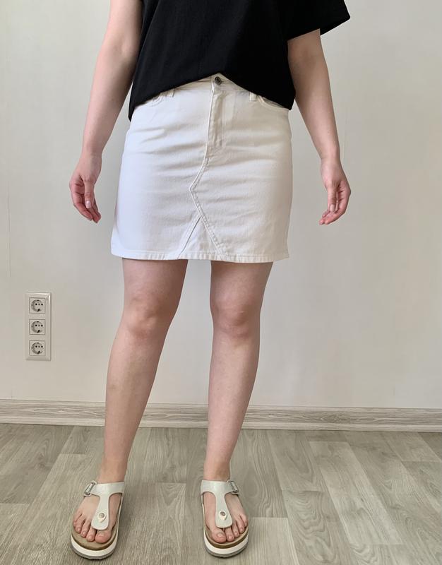 Джинсова спідниця молочного кольору Розмір 40 Л 100% катон Довжина 41 см, напівобхват талії 39 см, напівобхват стегон 51 см Стан ідеальний
