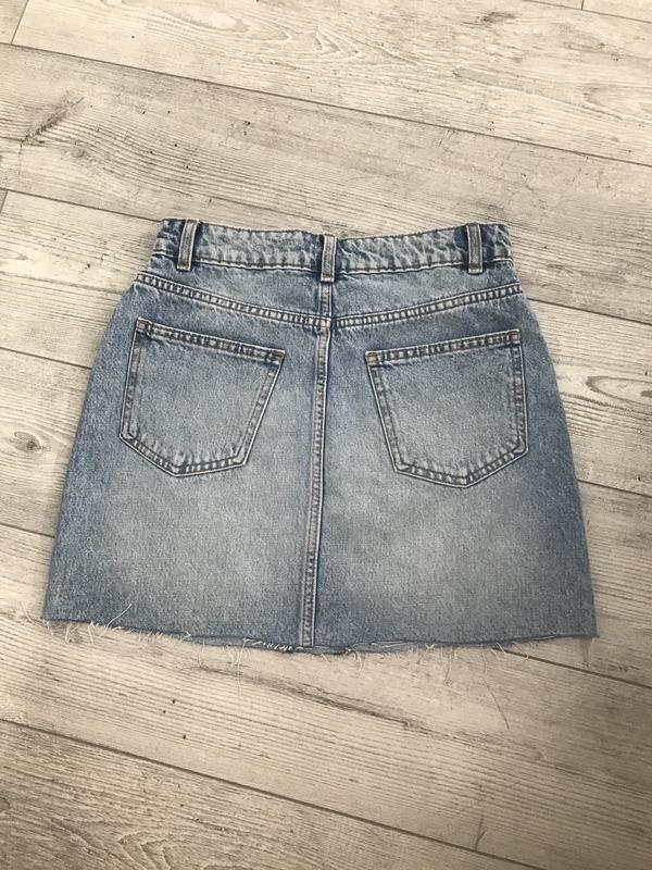 Джинсовая юбка с необработанным низомЗагал длина 38см ПОБ 47см ПОТ 34-35см