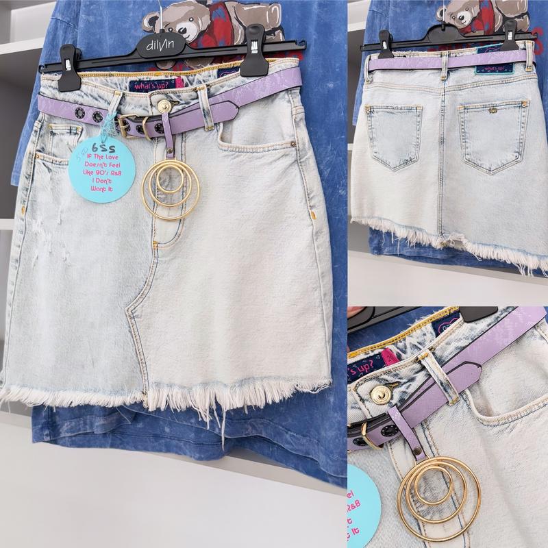 Sale‼️Ціна 450грн🔥🔥🔥 Якісна джинсова спідниця 🩵 Виробник Туреччина А-симеррична Пасок в комплекті Трохи тягнеться Розміри 26, 27,29 26: Пот 37, поб 47, довжина 43 27:Пот 38, Поб 48, довжина 43 29: Пот 39, поб 50, довжина 43см