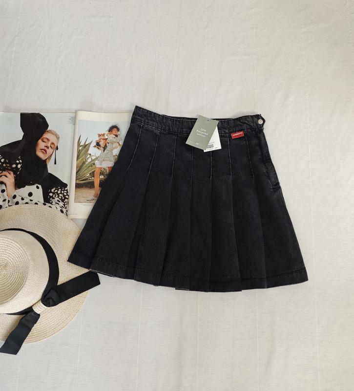 🌿джинсова спідниця в складки H&M з вареним ефектом Розмір:34 Заміри:ПОТ 34 см, ПОБ 56 см довжина 42 см
