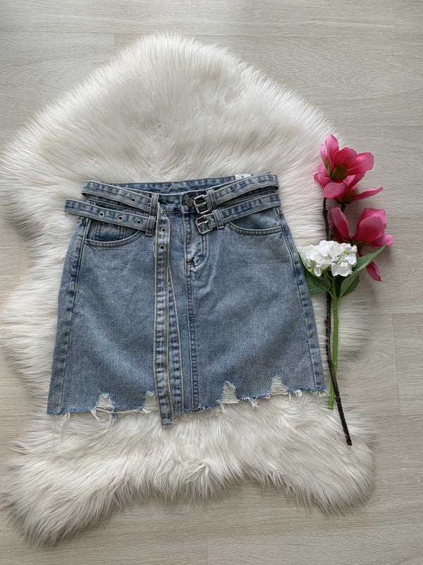 Стильова джинсова юбка с ремінцями ,неймовірно крута та красива.