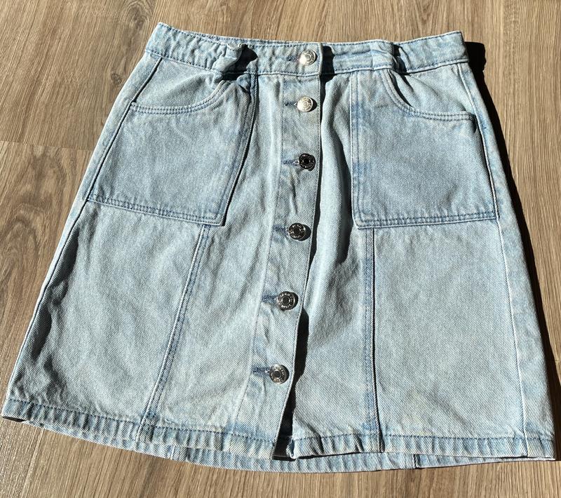 Джинсова спідниця для дівчинки 12–13 років Стильна джинсова спідниця красивого світло-блакитного кольору — чудовий вибір для літа! Підійде на вік 12–13 років, зріст приблизно 153 см. Модель повністю розстібається спереду на ґудзики, що додає зручності й сучасного вигляду. Спереду — два зручні кишені. Спідниця виглядає дуже акуратно й гармонійно поєднується з будь-якими футболками, топами чи сорочками. Розміри: • Довжина: 40 см • Пояс (напівобхват): 66см • Орієнтований вік: 12–13 років • Ріст: 152–154 см Тканина: щільний, але м’який денім високої якості. Підійде для школи, прогулянок чи святкових заходів. Гарний варіант на кожен день!