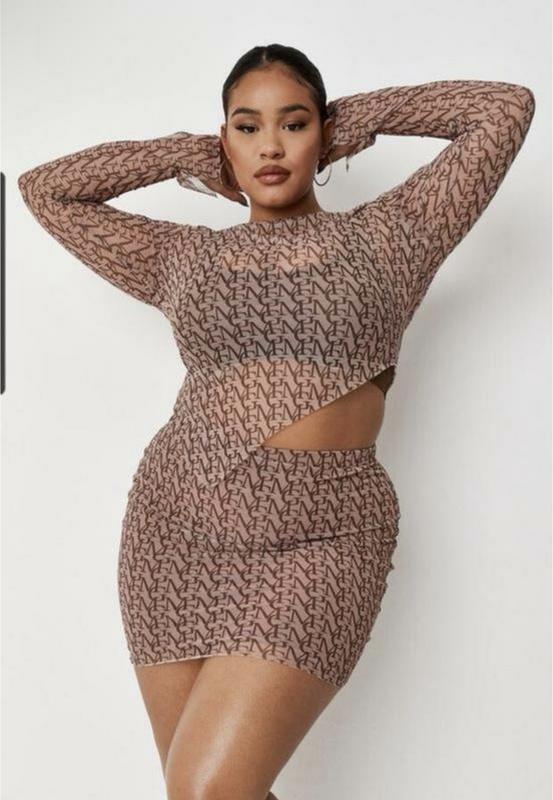 НОВА Спідниця на резинці, без застібки. Верх - сітка. На підкладці. Підкладка пришита з боків, відповідно, верхній шар не буде підніматися. Дуже стильна та приємна до тіла. ‼️Нова з етикеткою ‼️ Бренд: Missguided Розмір: 52 європейський (5XL)але орієнтуйтесь на заміри! ПОТ: 51 см, тягнеться до 70 см Стегна: 61 см тягнеться до 81 см Довжина виробу: верх- 52.5 см, підкладка - 44.5 см Склад: 95% поліестер, 5% еластан. Підкладка - 95% поліестер, 5% еластан.