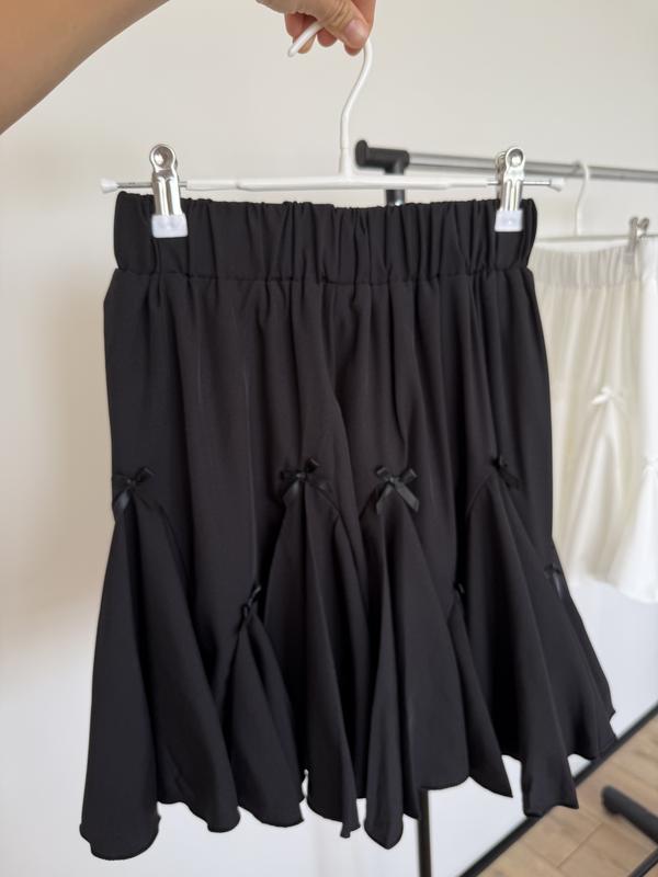 Нарядна спідниця з бантиками. Підкладка - шорти. Бантики по всій спідниці і спереду і ззаду. Тканина поліестр. Заміри: Талія 29см Довжина 40см Розмір підійде на XS/S/M невиличкий Талія 60-70см, стегна будь-які. Гарно поєднується як з нарядним верхом і каблуком, так і з повсякденним топом та взуттям.