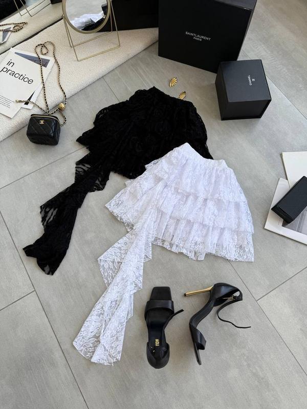 ✨ Эффектная юбка с асимметричным воланом ✨ Эта юбка из гипюра - настоящий must-have лета! Легкая, нежная и стильная, она выглядит просто роскошно в движении 🖤🤍 ▪️ Цвет: белый и черный ▪️ Мод: 369 ▪️ Размер: 42/44 и 46/48 ▪️ Ткань: гипюр (ажурная, воздушная, с нежным узором) ▪️ Фасон: многоярусный крой с асимметричным воланом сбоку Идеально сочетается с базовыми топами и босоножками. Выглядит дорого без лишних усилий! 💃