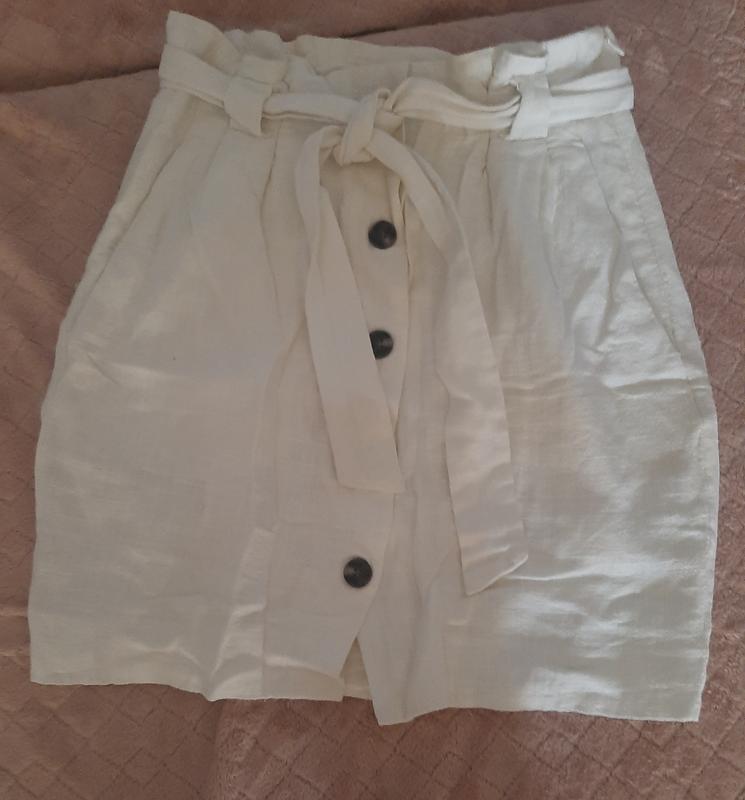 Белая юбка лен,вискоза,белого цвета,H&M S-M
