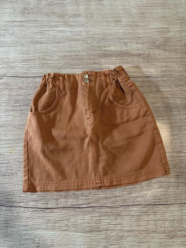 Спідниця з високою посадкою на резинці нюдового кольору котонова topshop