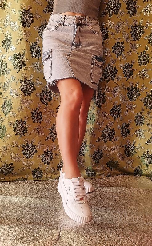 Стильная джинсовая мини-юбка с накладными карманами