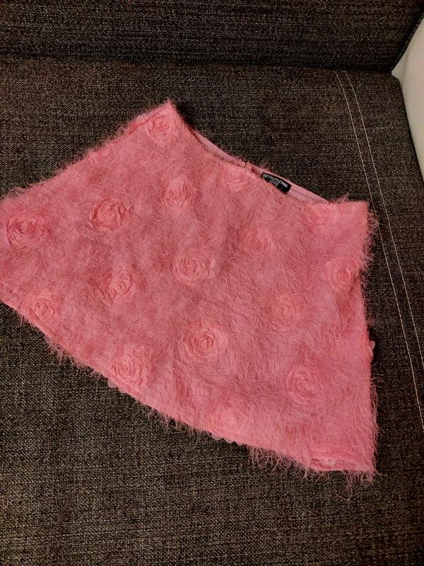 Стильная мини юбочка в розы розового коляска в ворсинки,s