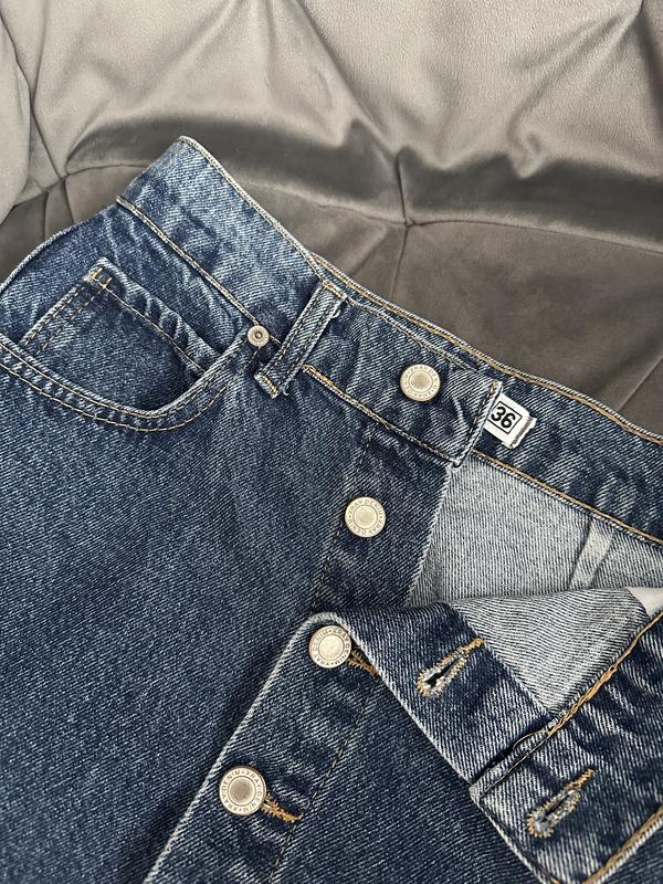 Джинсова спідниця з високою талією Насичений темний колір Заміри: ПОТ 34 см ПОБ 45-48 см ДОВЖИНА 45 см