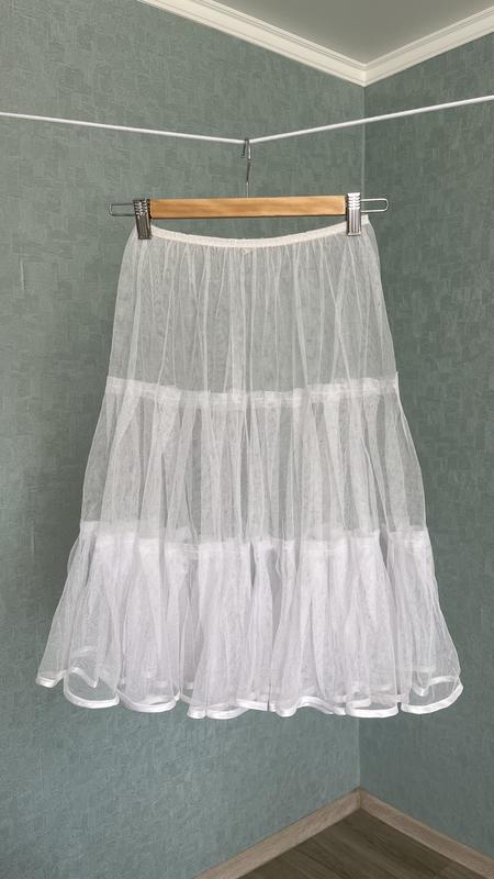 Нижняя юбка или подъюбник фатиновый трехярусный белый на резинке. Объем талии 60 см в нерастянутом виде, длина 60 см. 100% полиэстер