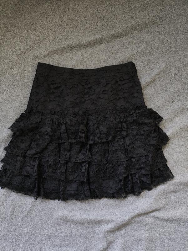 Мини-юбка с оборками от h&m. Длина на фото, талия 36 см (72). Юбка была подшита под мой размер, на внутренней стороне остались маленькие дырочки (фото 6), но их на внешней стороне не видно.