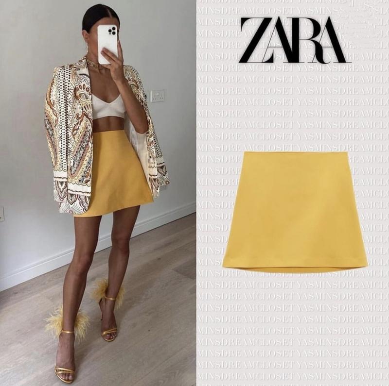 🌿желтая мини юбка от Zara красиво держит форму Размер:S Замеры:ПОТ 36 см, ПОБ 50 см, длина 37 см