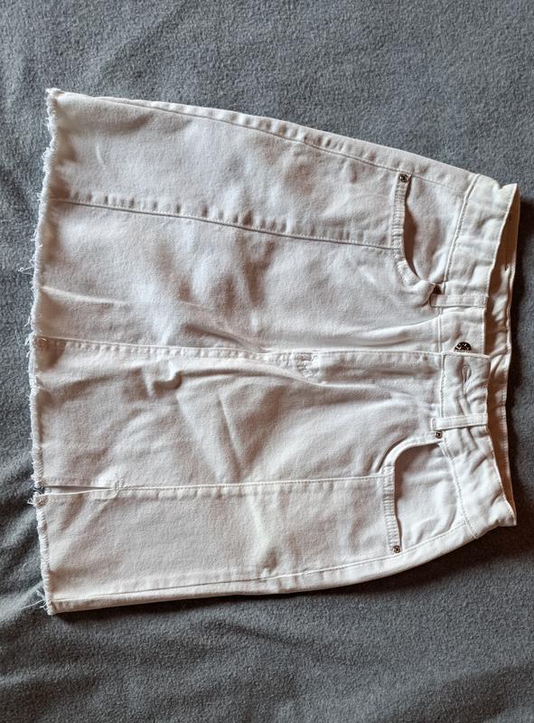 Белая джинсовая юбка Изготовлена из высококачественного денима В идеальном состоянии Имеет разрез на левой ножке Есть резинка на талии Замеры юбки: полуобхват пояса 33, полуобхват бедер 47, длина изделия: 46