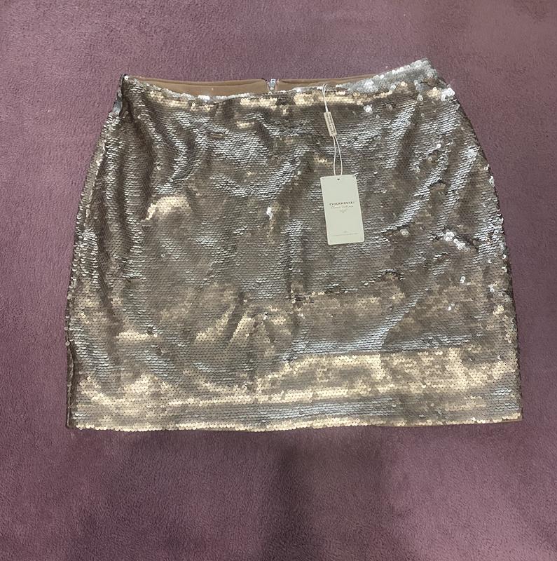 Спідниця з паєтками. Нова. Колір бежевий. Паєтки двосторонні+ сірий. Розмір ХЛ. Довжина вище колін. З підкладкою