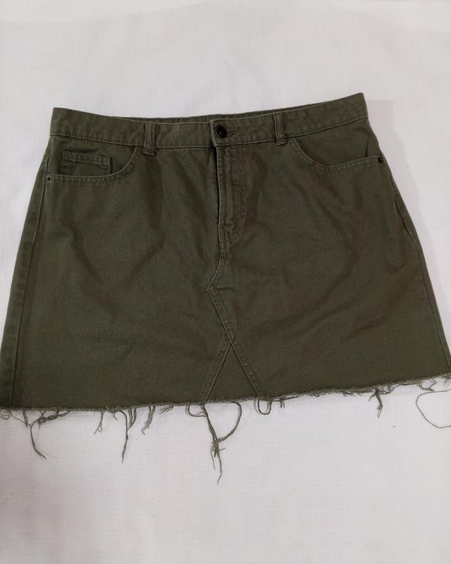 Юбка джинсовая мини. Новая без бумажной бирки. Цвет хаки. Замеры: Полуобхват талия 46 см, бедра Полуобхват 60 см, длина 42 см.