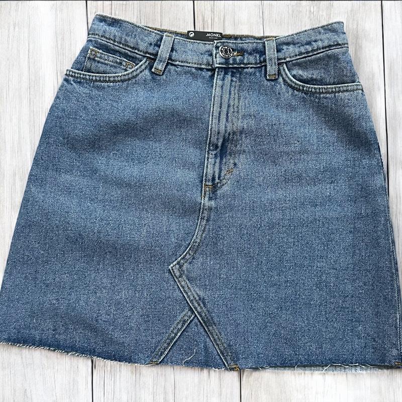 Фасон: класичний high-waist (висока посадка), regular fit, коротка міні-довжина. Має прямий крій,пояс із шльовками, застібка (молнія та ґудзик), кишені спереду й ззаду Матеріал 100% коттон Модель з необробленим низом Відмінний everyday-варіант, який пасує і до кросівок, і до блейзера.